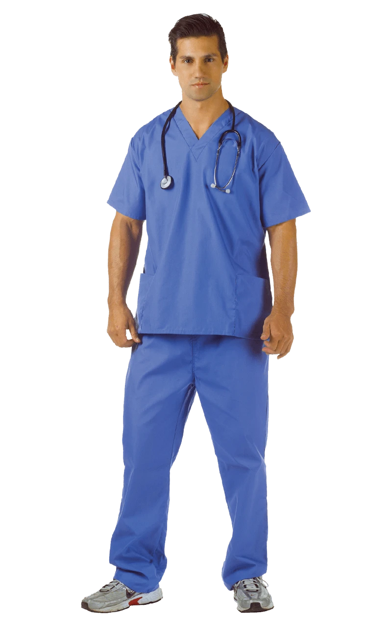 Our Adult Blue Hospital Scrubs Costume is a great costume for those uniform themed fancy dress parties. Whether you’re dressing up as a doctor or a movie character, this realistic look scrub set should do the trick nicely! All the nurses will have their hearts racing over you!