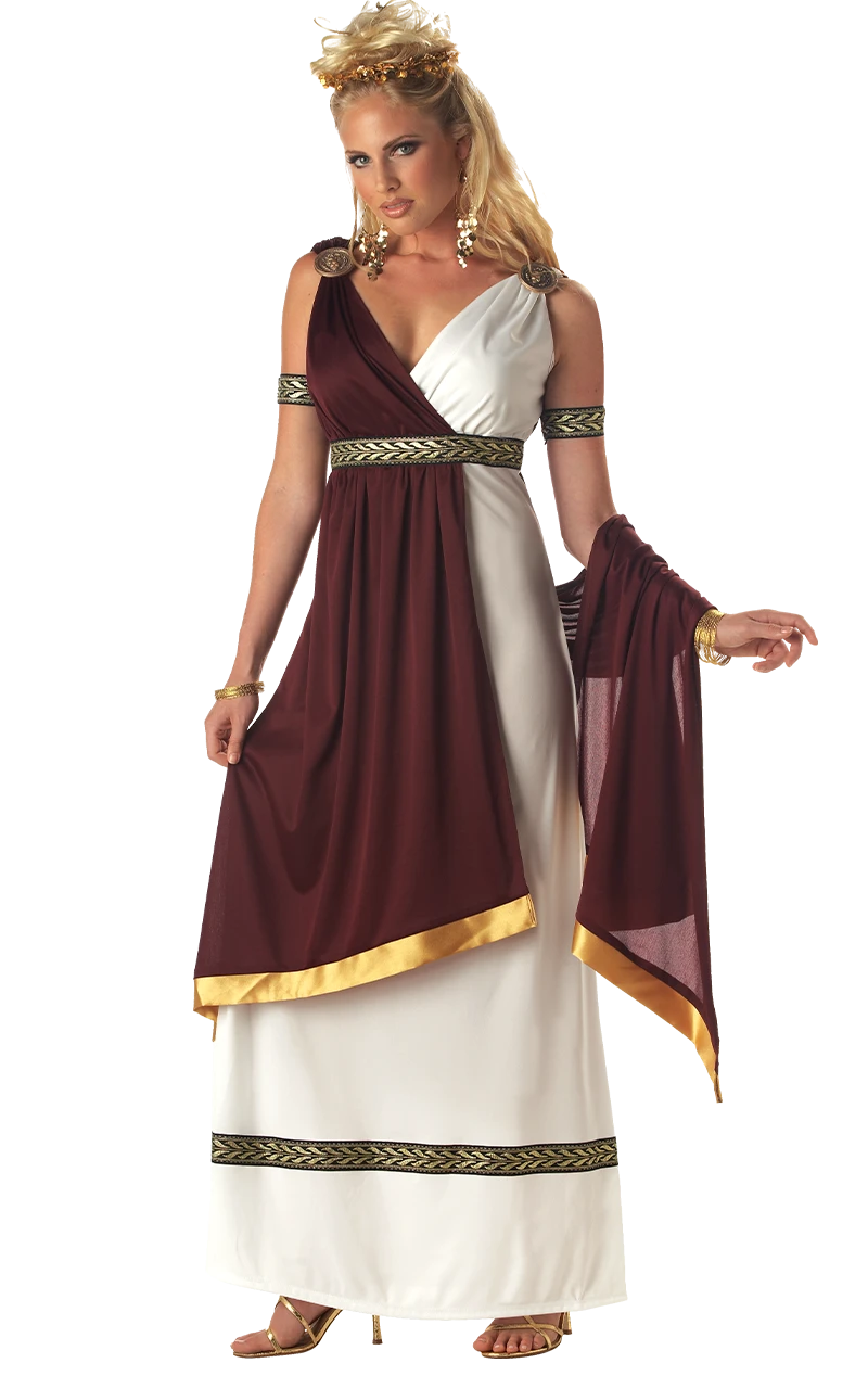 Every Goddess or Empress needs to dress with style, you are a trend setter after all! This Adult Elegant Roman Empress Costume is perfect for any toga or historical party! Act with grace, poise and float around the dance floor whilst in this costume, and people will fall at your feet! (And maybe hand feed you some grapes! Yum!)