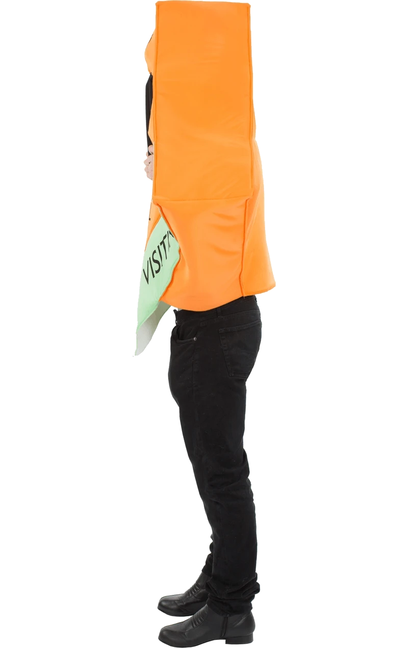 The words ‘IN JAIL’ and ‘JUST VISITING’ are printed on to the front of the novelty costume.