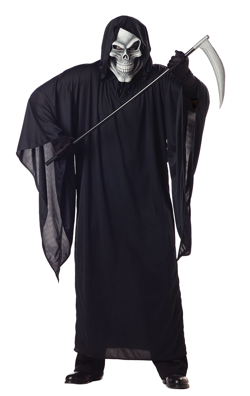 Spook the world in this awesomely scary Adult Plus Size Grim Reaper Costume. Haunt the towns and villages wreaking your vengeance on the poor peasant folk. Includes a robe with wide sleeves and a separate skull facepiece.