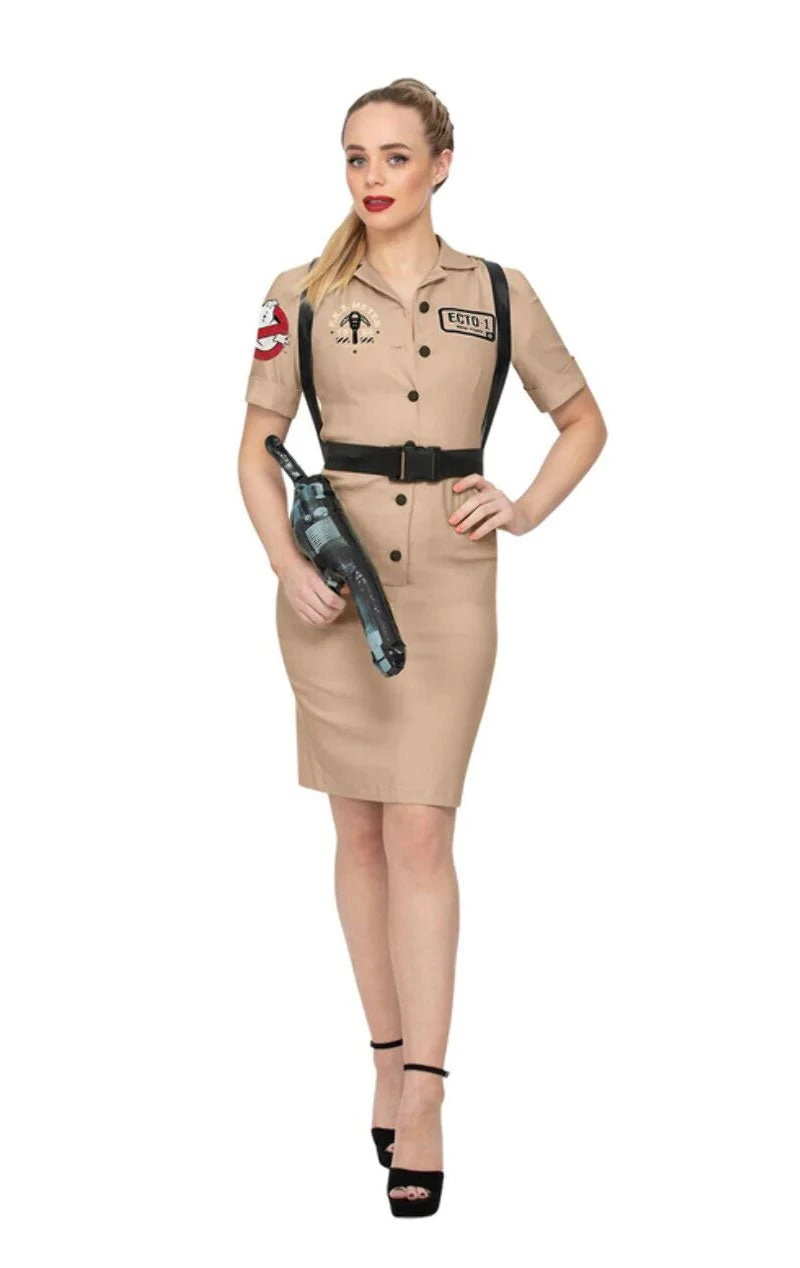 This sassy updated Female Ghostbusters Afterlife Costume comprises of a fitted beige dress, black belt & Inflatable Proton Pack. It’s a super cute twist on the classic Ghostbuster costume.