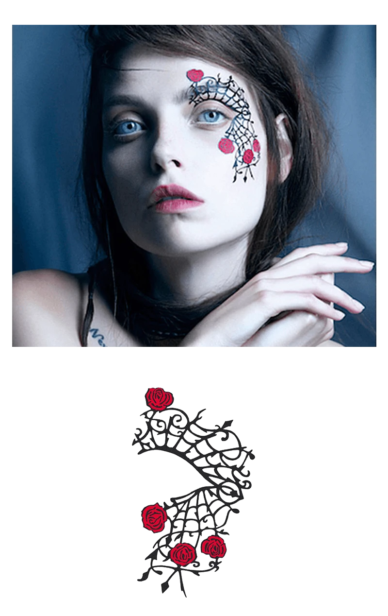 The Gothamour Face Lace design is inspired by nouveau roses and intricate spider webs. Easy to apply and remove, Face Lace is a perfect choice for precision makeup.