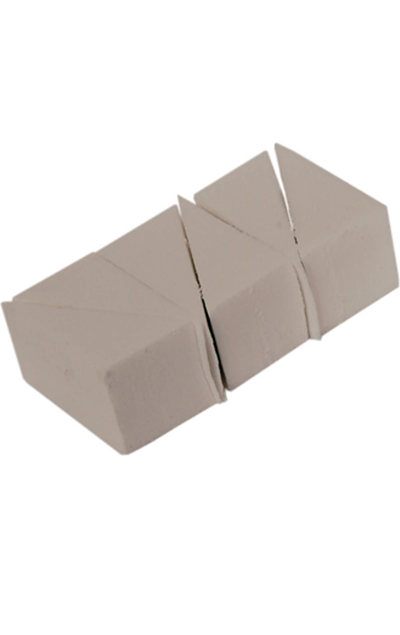 Triangular sponges used for applying make-up. These are ideal for creme or grease based make-up.