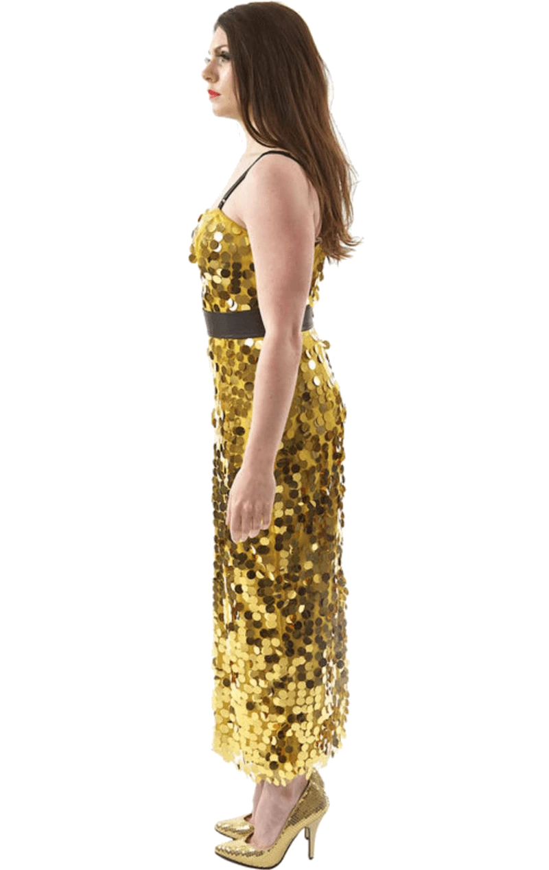 Unleash your inner pop star with our gorgeous Promise Dress & Belt! The stunning dress is covered in large gold sequins, creating an eye-catching style that’s guaranteed to impress your adoring fans!