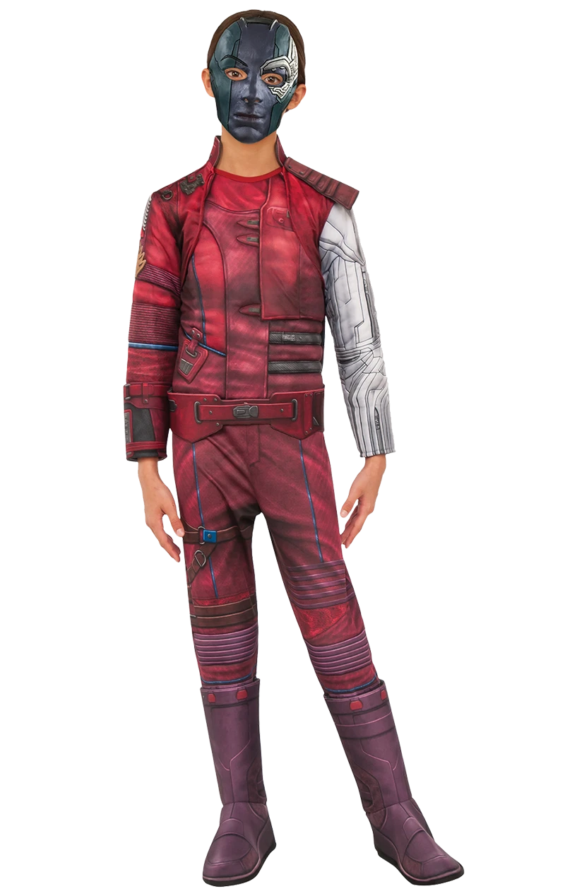 Inspired by Nebula’s cybernetic look in Guardians of the Galaxy, your kid will be ready to set out on her journey to kill the villainous Thanos in this red jumpsuit with boot covers, matching belt and cyber face facepiece.