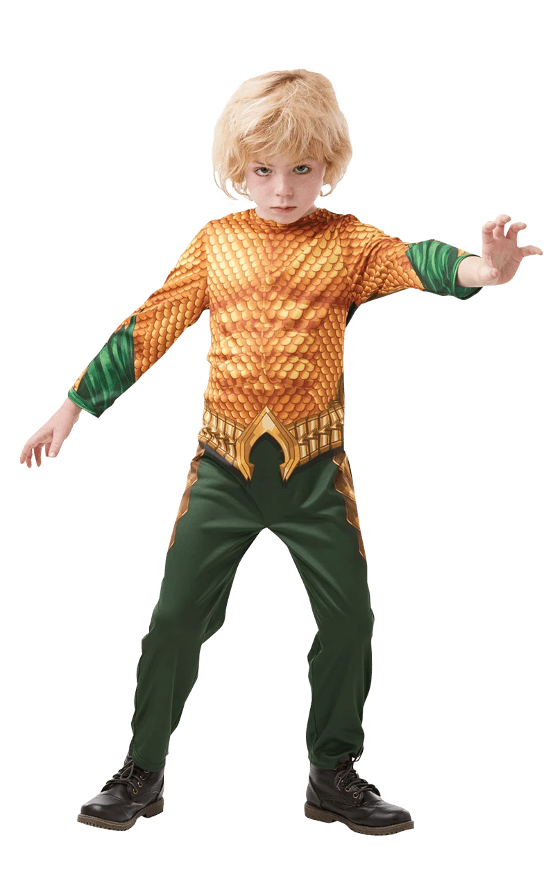 The Kids Aquaman Costume is based on the character’s look from the standalone Aquaman movie. It’s an all-in-one jumpsuit with unique prints and detailing, that’s designed to look just like Aquaman. Scales, fins and bright colours will ensure that everyone recognises your little one as the king of the seas!
