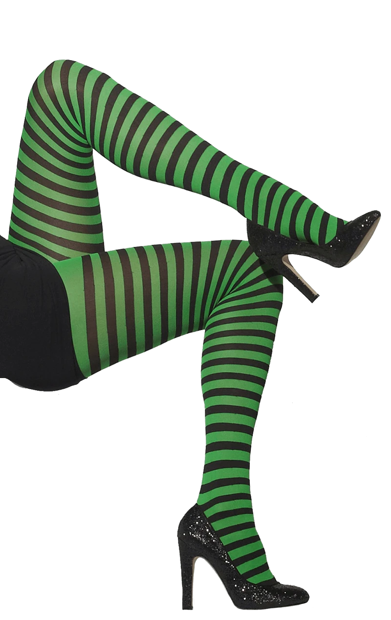 The Adult Green and Black Striped Tights will complete your transformation into an old, warty, cackling, broomstick riding Witch this Halloween!