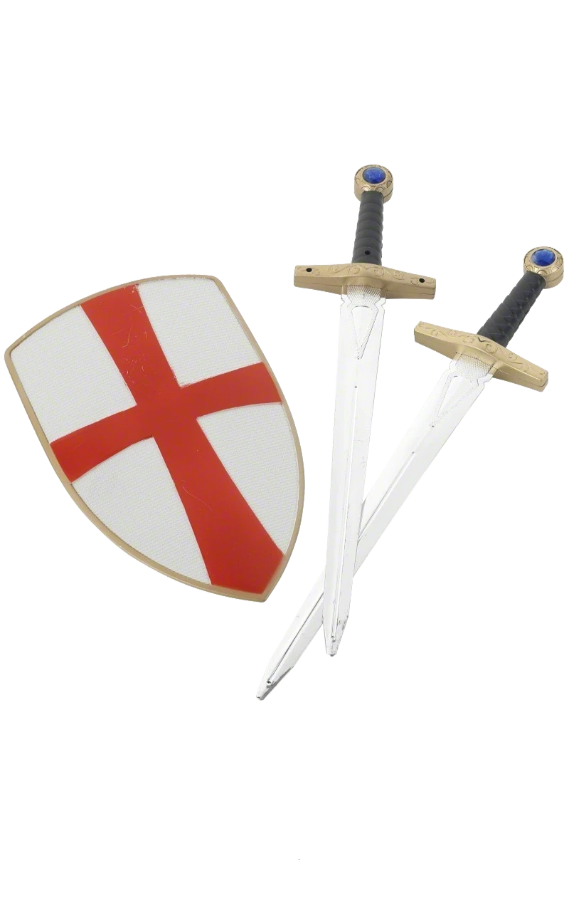A must for any budding knight of the realm. Kit includes two swords with gold coloured handles and shield.