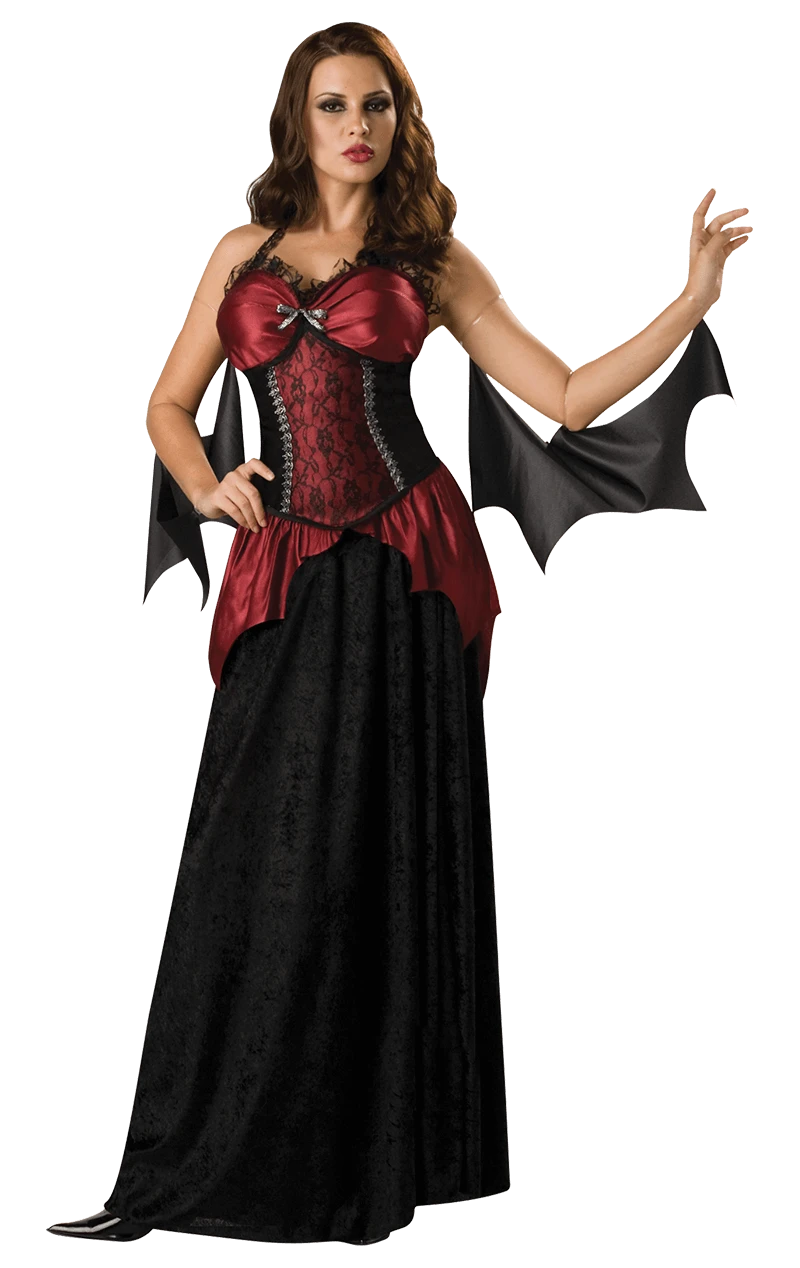 Accentuate every curve this Halloween in this stunningly seductive gothic Vampira costume. Featuring Victorian style corset and sensual bat drapes for the arm, there’ll certainly be no vampire slaying with you at the party!