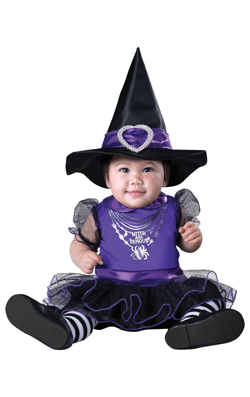 Witches don’t get much cuter than this little purple witch, complete with sparkly silver ‘Witch and Famous’ spider motif, tutu and hat. Your child is sure to cast her mischievous spell in this sweet little number, perfect for trick-or-treating and Halloween party fun.